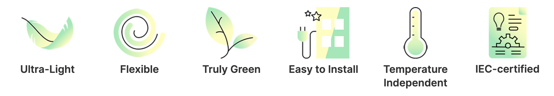 HeliaSol is the most advanced IEC-certified organic solar solution, designed to seamlessly integrate with any surface. These ultra-light, flexible, and ultra-thin solar films offer an eco-friendly and efficient alternative to harness solar energy, without the need for support structures or drilling.